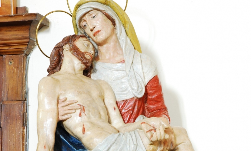 Nell’abside è la Natività della Vergine con Gioacchino ed Anna, animata da vari personaggi e da putti alati. Tra gli arredi, di singolare importanza è la statua in terracotta policroma della Madonna di Carpaneta, che raffigura l’Addolorata col Figlio morto sulle ginocchia. Opera di ignoto, è databile tra la fine del secolo XV e gli inizi del XVI. La leggenda vuole che sia stata rinvenuta nel vicino fondo della Carpaneta durante l’aratura. Portata nella chiesa di Bigarello, il giorno seguente sparì per ritornare nel luogo del rinvenimento. Si decise allora di trasferire la statua non più a Bigarello, ma nella chiesa di Stradella ritenendo che le fosse più gradita.