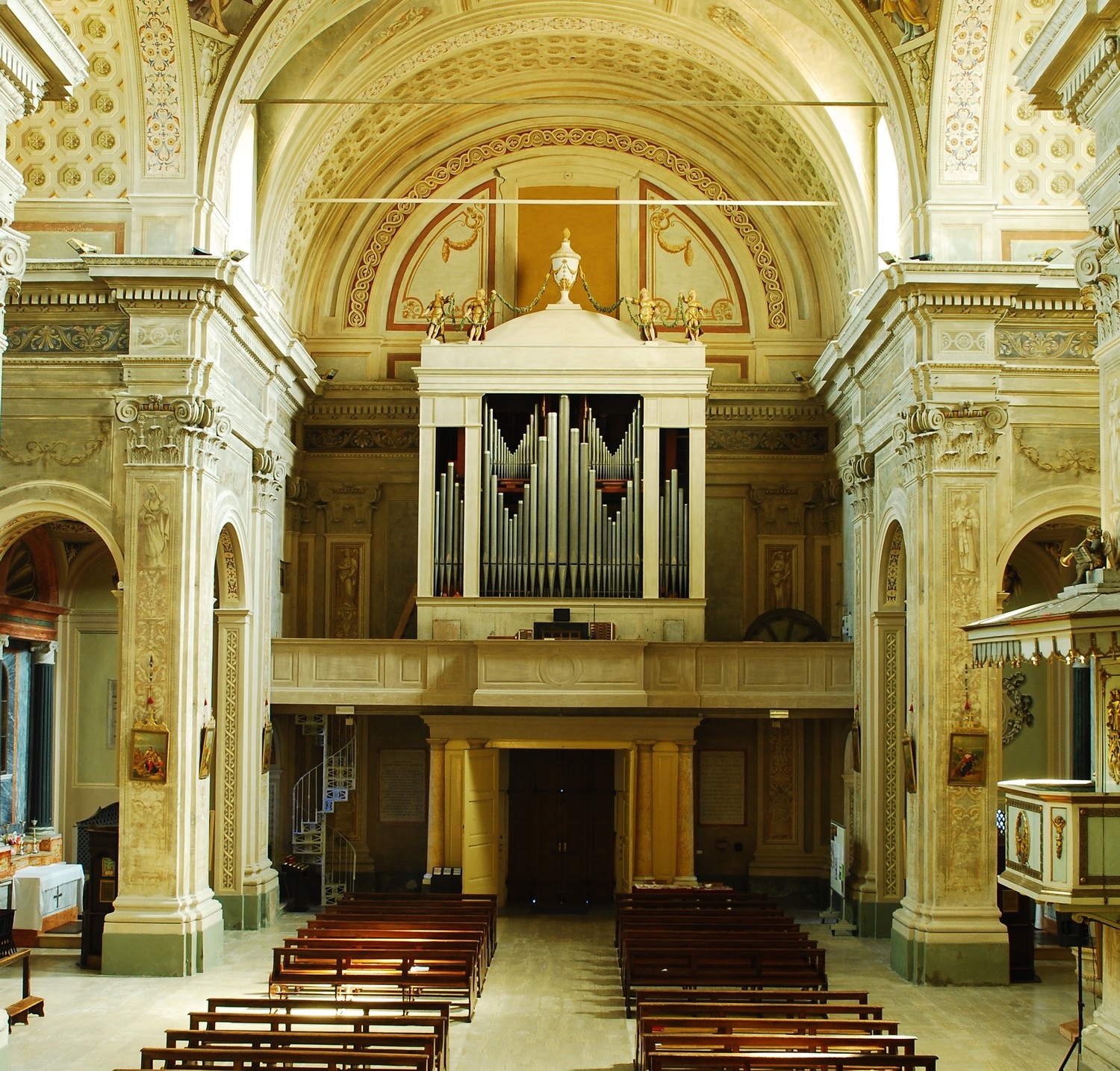 Costruita a partire dal 1756 e conclusa nel 1805 la chiesa sostituisce un precedente tempio demolito ad inizio dell’Ottocento. Della vecchia chiesa rimangono il muro inglobato nell’attuale canonica e il campanile. Questo della prima metà del Quattrocento, chiaramente derivato dal modello del campanile della Basilica di Sant’Andrea, si rifà all’architettura gotica lombarda. Con la canna scandita da pilastri angolari e da cornici marcapiano ad archetti acuti intrecciati, ha una cella campanaria aperta da bifore con capitelli scudati. L’ottagono che sorregge la cuspide presenta monofore con bardelloni di derivazione campionese. L’arco ad ogiva presente alla base rimanda al transetto gotico della vecchia chiesa, mentre la monofora, sul muro della canonica, alla navata laterale della chiesa più antica del XII secolo. L’attuale chiesa, di gusto tardo barocco, riprende il modello della pianta rettangolare resa cruciforme tramite pilastri che creano quattro spazi secondari.