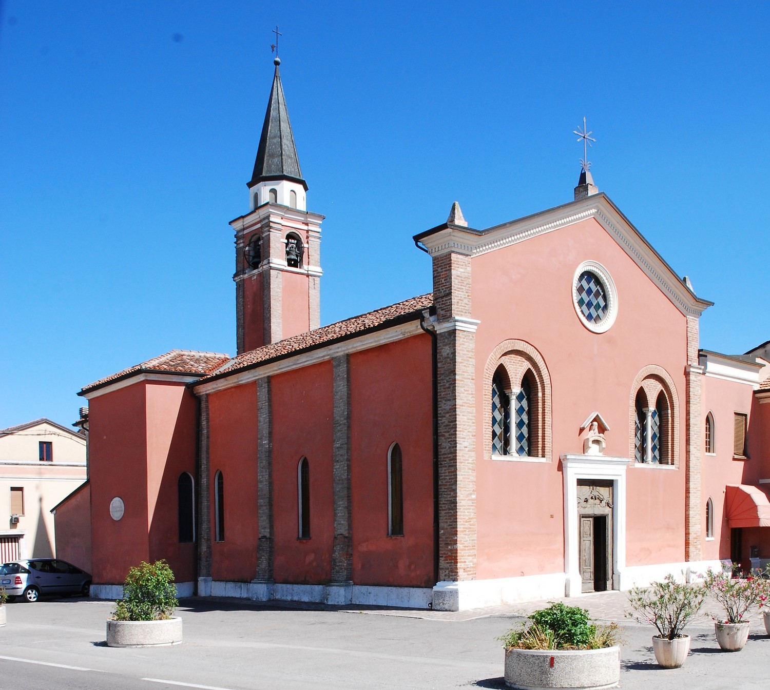 Eretta nel 1429 e riedificata in parte nel 1603 la Chiesa Parrocchiale Natività della Beata Vergine è, come spiega il nome, dedicata alla Natività della B. Vergine. La facciata è conclusa da due spioventi con cornice dentellata, mentre al centro della facciata si trova un portale architravato con porta in legno della metà del Settecento, coronato da una scultura cinquecentesca del Padre Eterno benedicente. Le bucature ogivali, le bifore, e la guglia del campanile sono stati realizzati negli anni ’20 del secolo scorso. All’interno nelle due cappelle laterali si trovano degli altari con interessanti ancone marmoree di stile tardobarocco. Nel presbiterio due tele di Giovanni Cadioli (1710-1767) del 1756 raffigurano l’Annunciazione e Santi in Adorazione del P.P. Sangue. Nell’abside si trova la Natività della Vergine con Gioacchino ed Anna. Una serie di affreschi appartenenti alla primitiva chiesa e raffiguranti santi e Madonne con il Bambino, sono databili attorno alla fine del secolo XIV. Di particolare importanza è la statua della Madonna di Carpaneta in terracotta policroma di ignoto plasticatore, databile tra la fine del secolo XV e gli inizi del XVI, la quale raffigura l’Addolorata con sulle ginocchia il Figlio morto. La leggenda racconta che sia stata rinvenuta nel vicino fondo della Carpaneta durante l’aratura. Portata nella chiesa di Bigarello, il giorno seguente sparì per ritornare nel luogo del rinvenimento. Si decise pertanto di trasferire la statua non più a Bigarello ma nella chiesa della Stradella.
