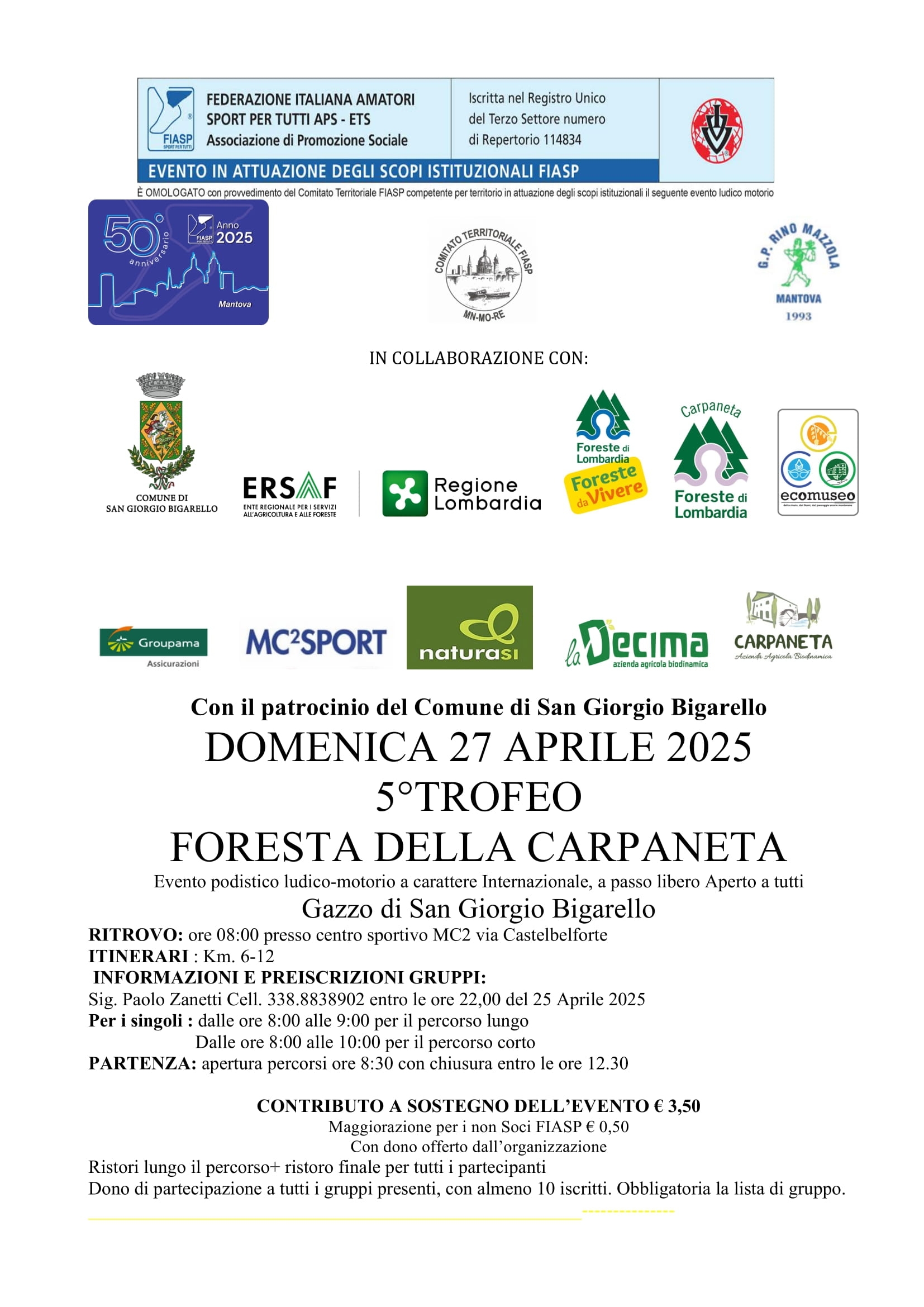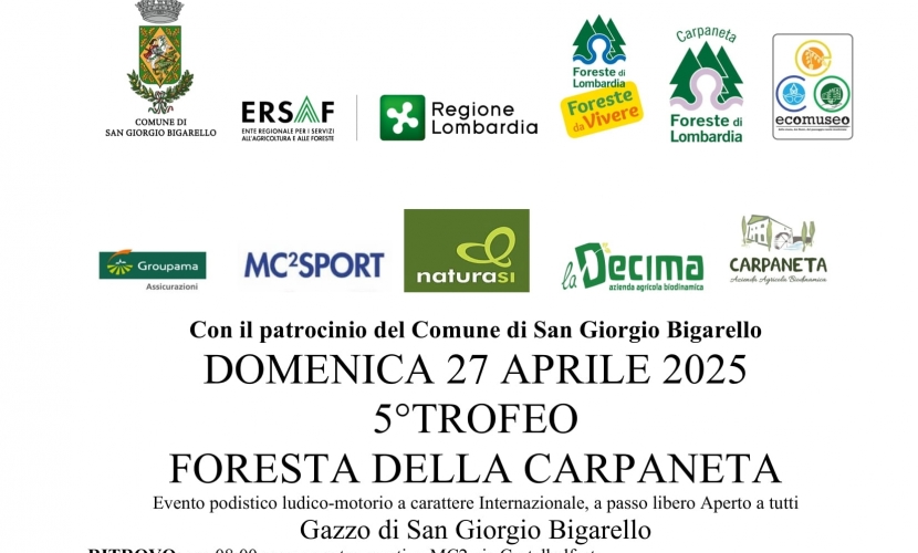 La Foresta della Carpaneta di San Giorgio Bigarello, domenica 27 Aprile 2025 sarà il luogo di incontro per gli amanti della camminata in occasione del Trofeo Foresta della Carpaneta, evento giunto alla sua quinta edizione.