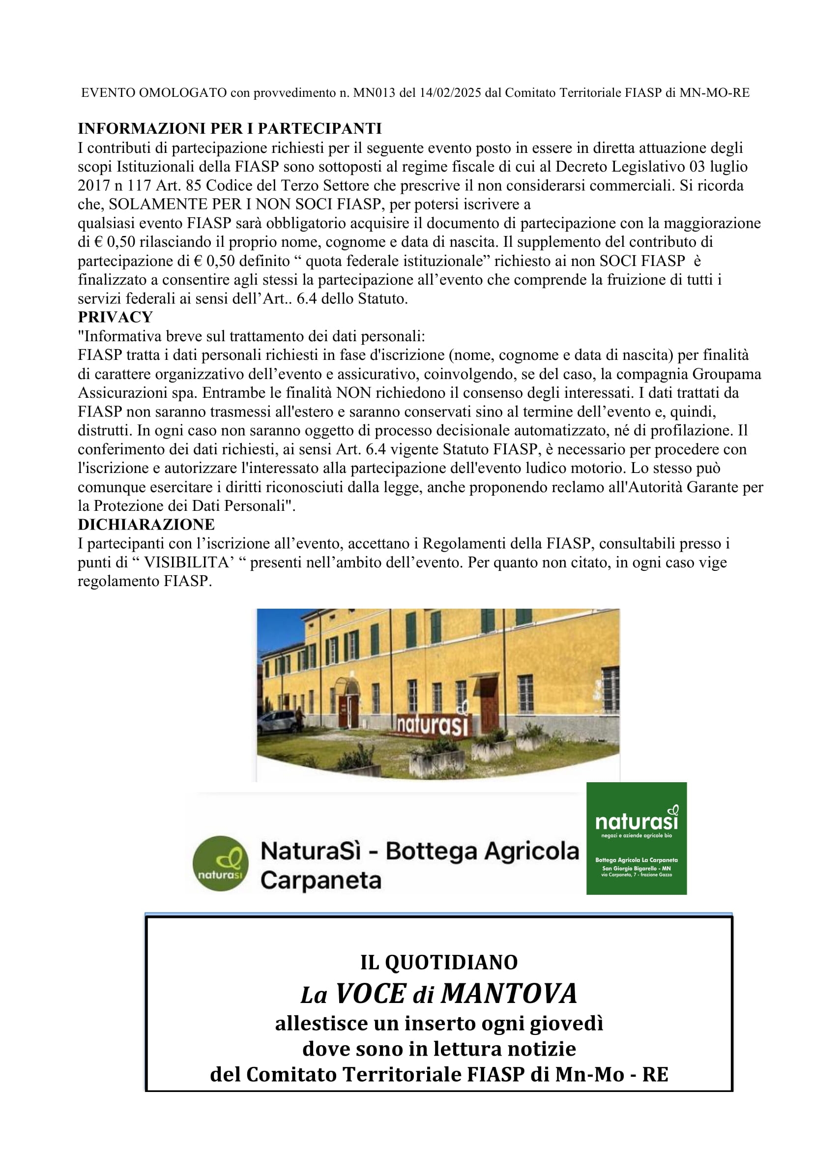 Il Trofeo è un evento ludico motorio a passo libero, aperto a tutti e omologato dal Comitato Territoriale FIASP Mantova.