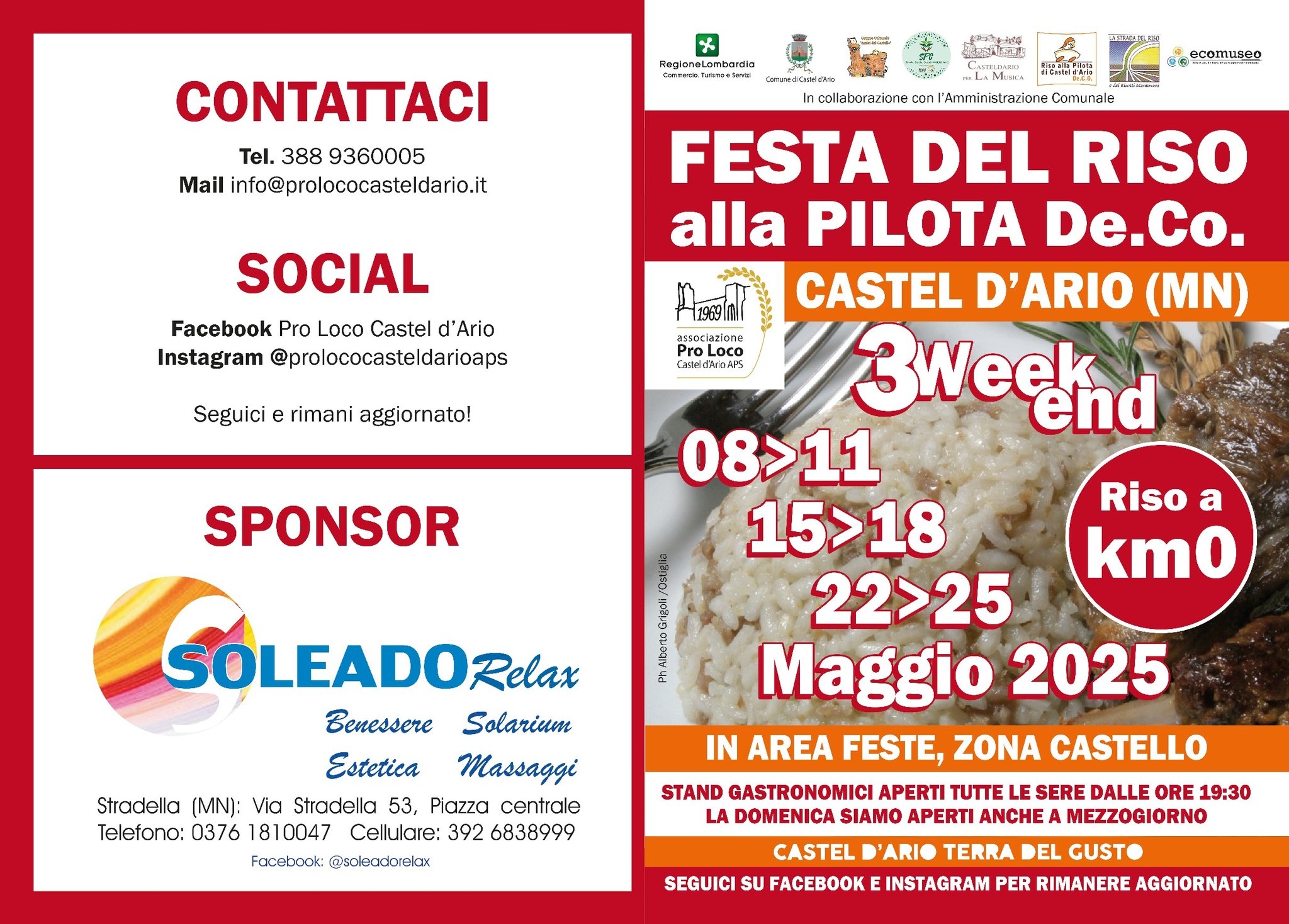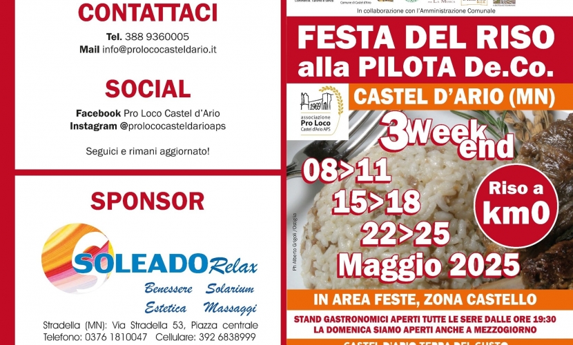 A Castel d’Ario torna l’appuntamento con la Festa del riso alla pilota Deco a cura della Pro Loco di Castel d'Ario!