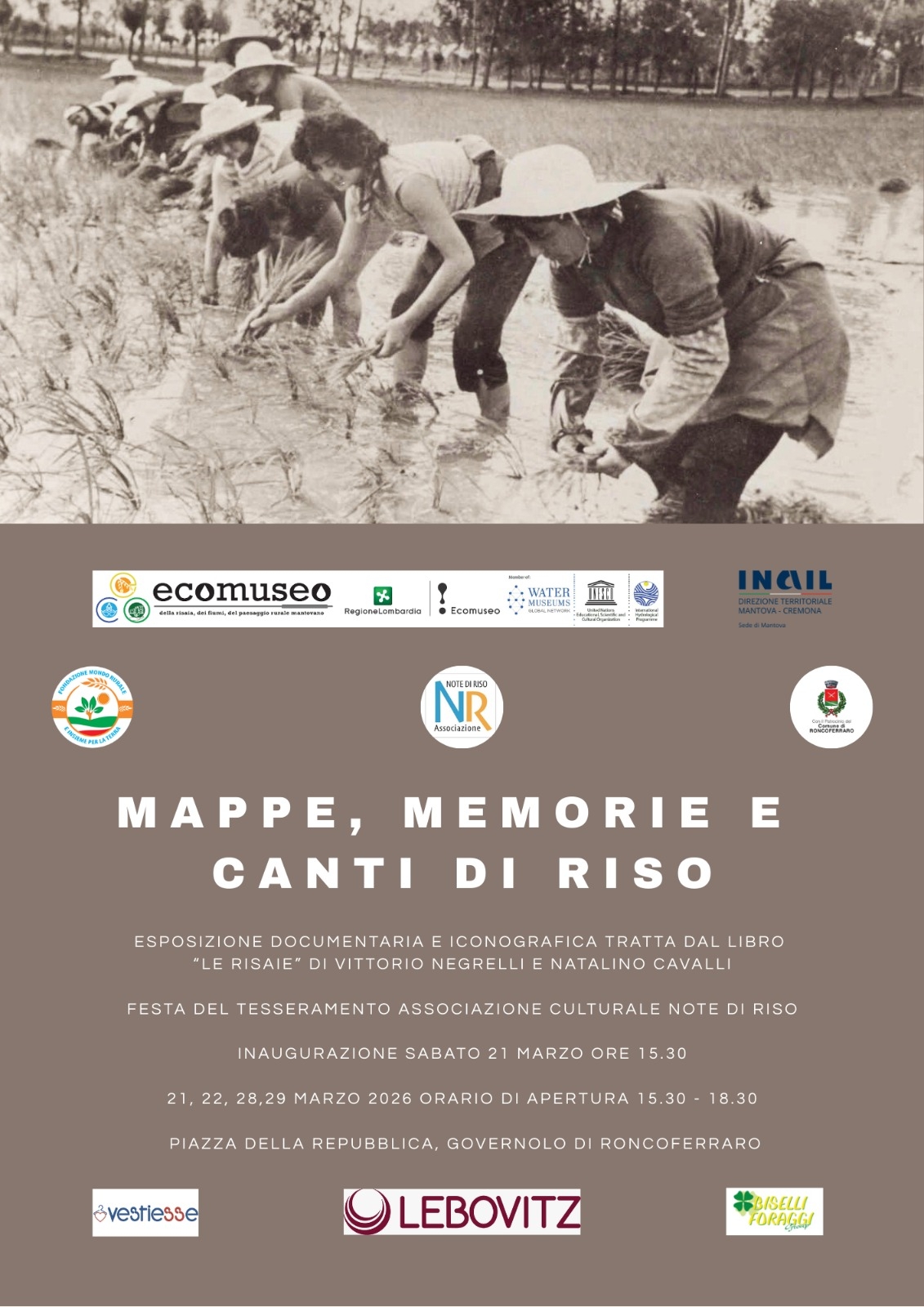 Esposizione documentaria e iconografica tratta dal libro Le risaie di Vittorio Negrelli e Natalino Cavalli.